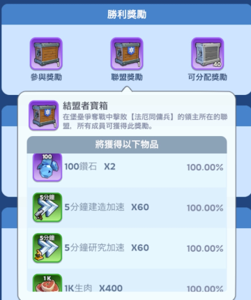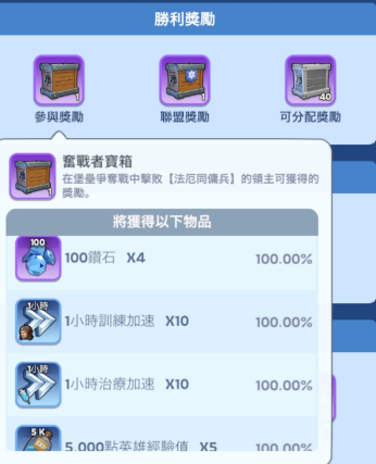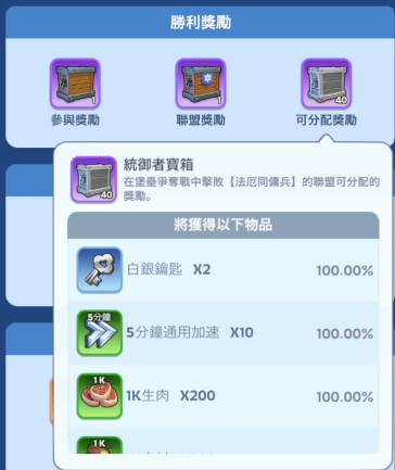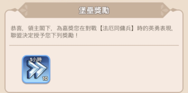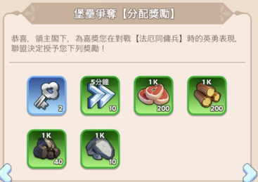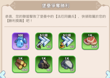 • 若成功第一次佔領該堡壘/要塞,聯盟將有權可以分配這些獎勵