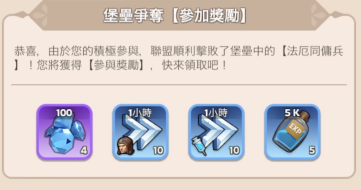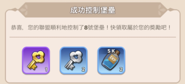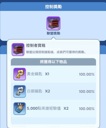• 當聯盟成功控制該堡壘/要塞,該聯盟每位成員將會獲得該獎勵